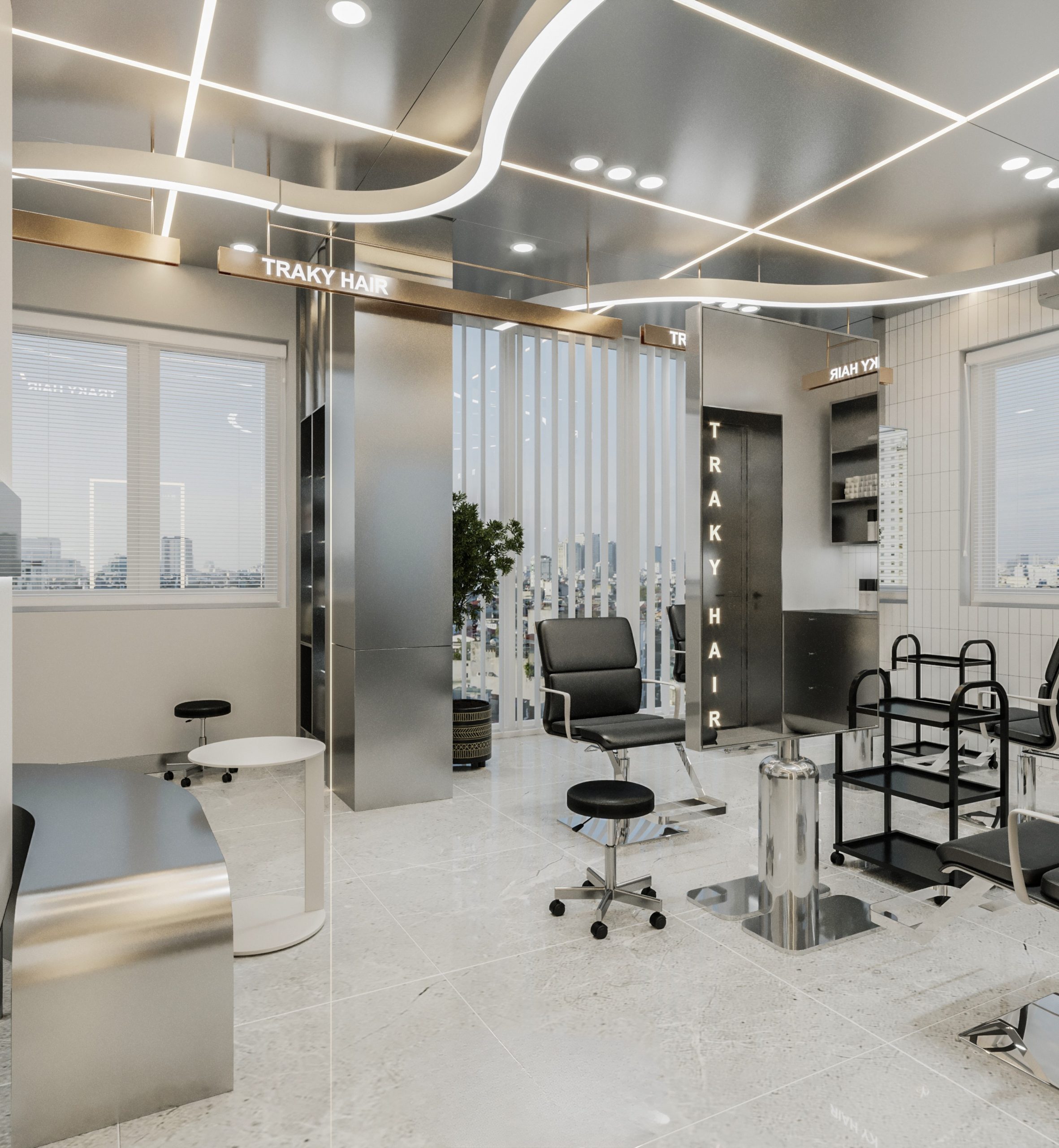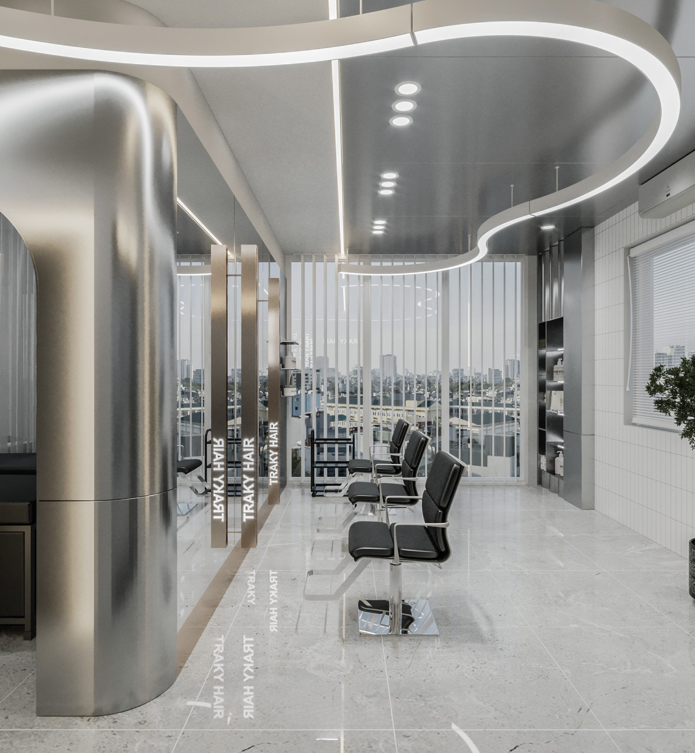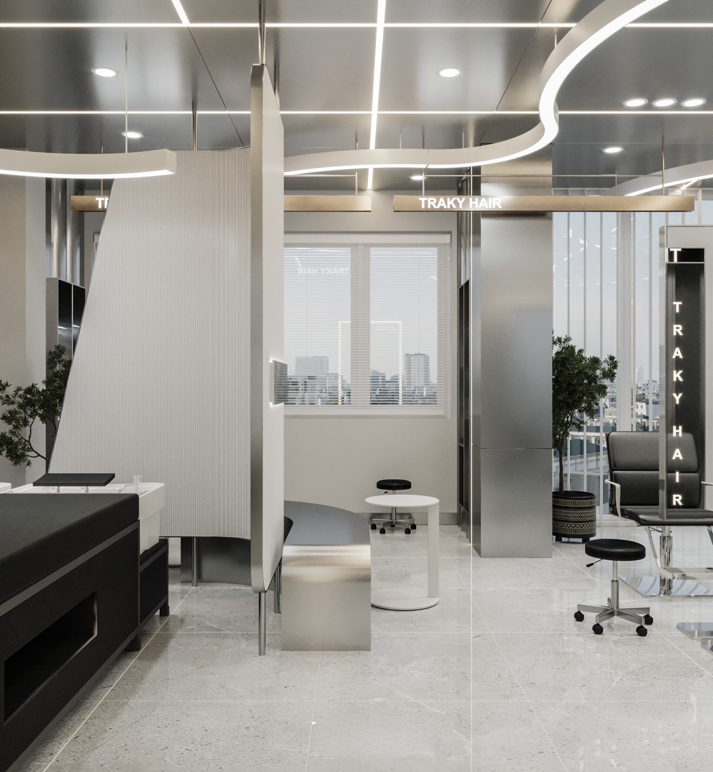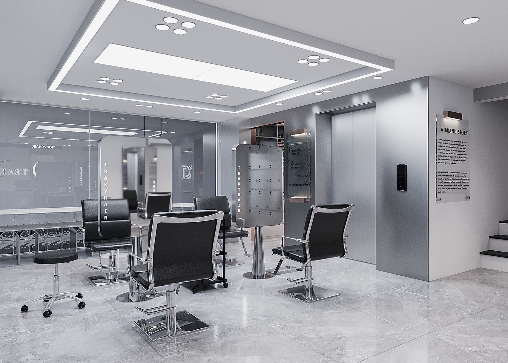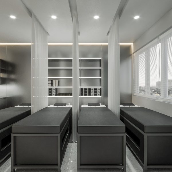 “A space built upon delicate balance, where light and shadow converge to embrace a gentle warmth. The hair zone, the lounge, and the display elements flow seamlessly together, creating a stage for both sight and sensation.”