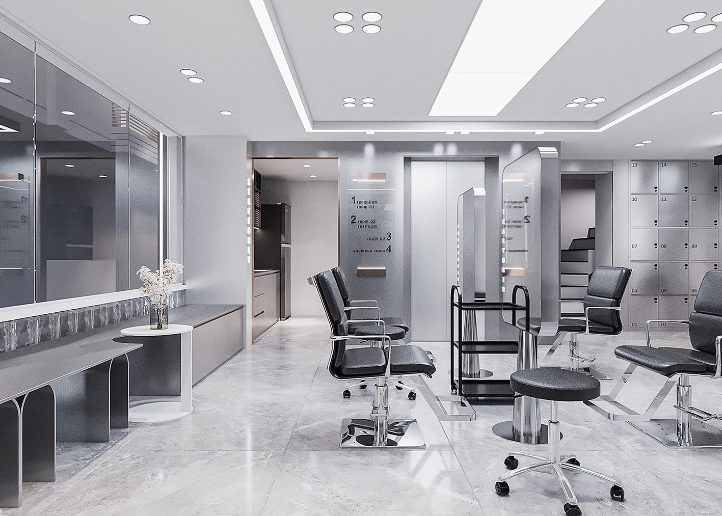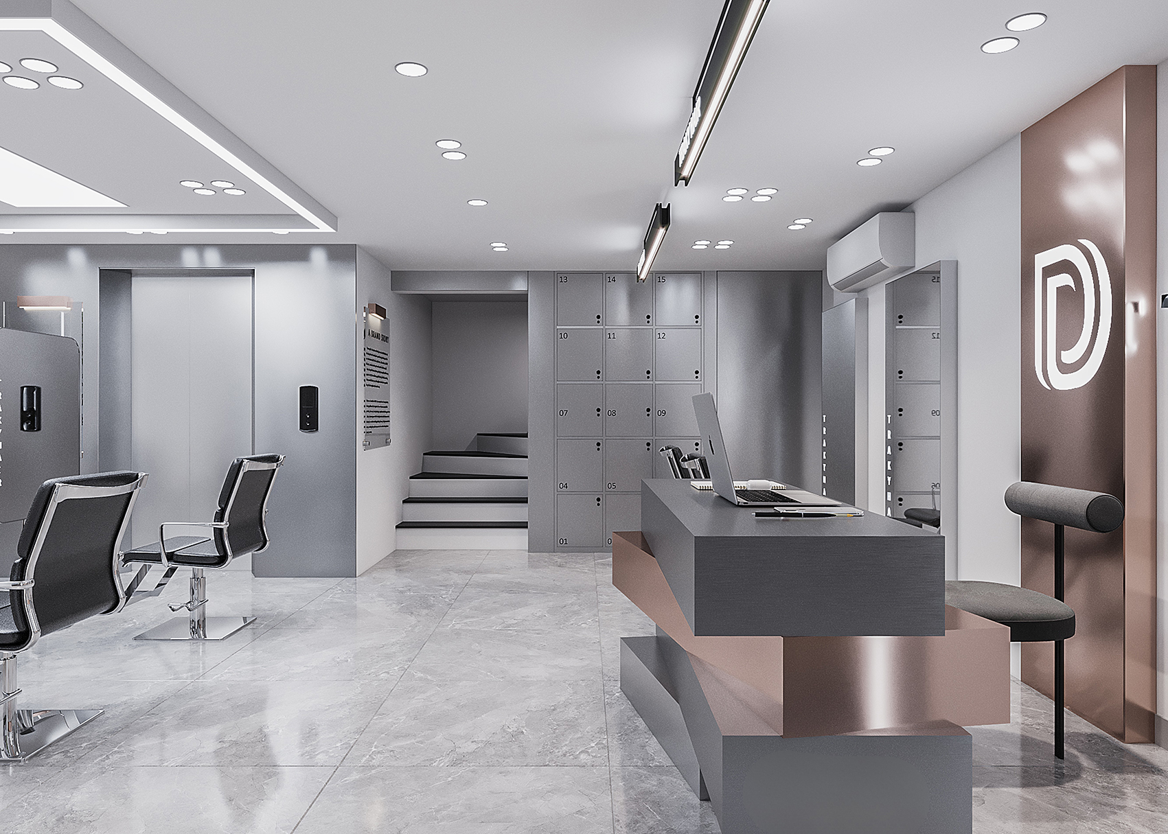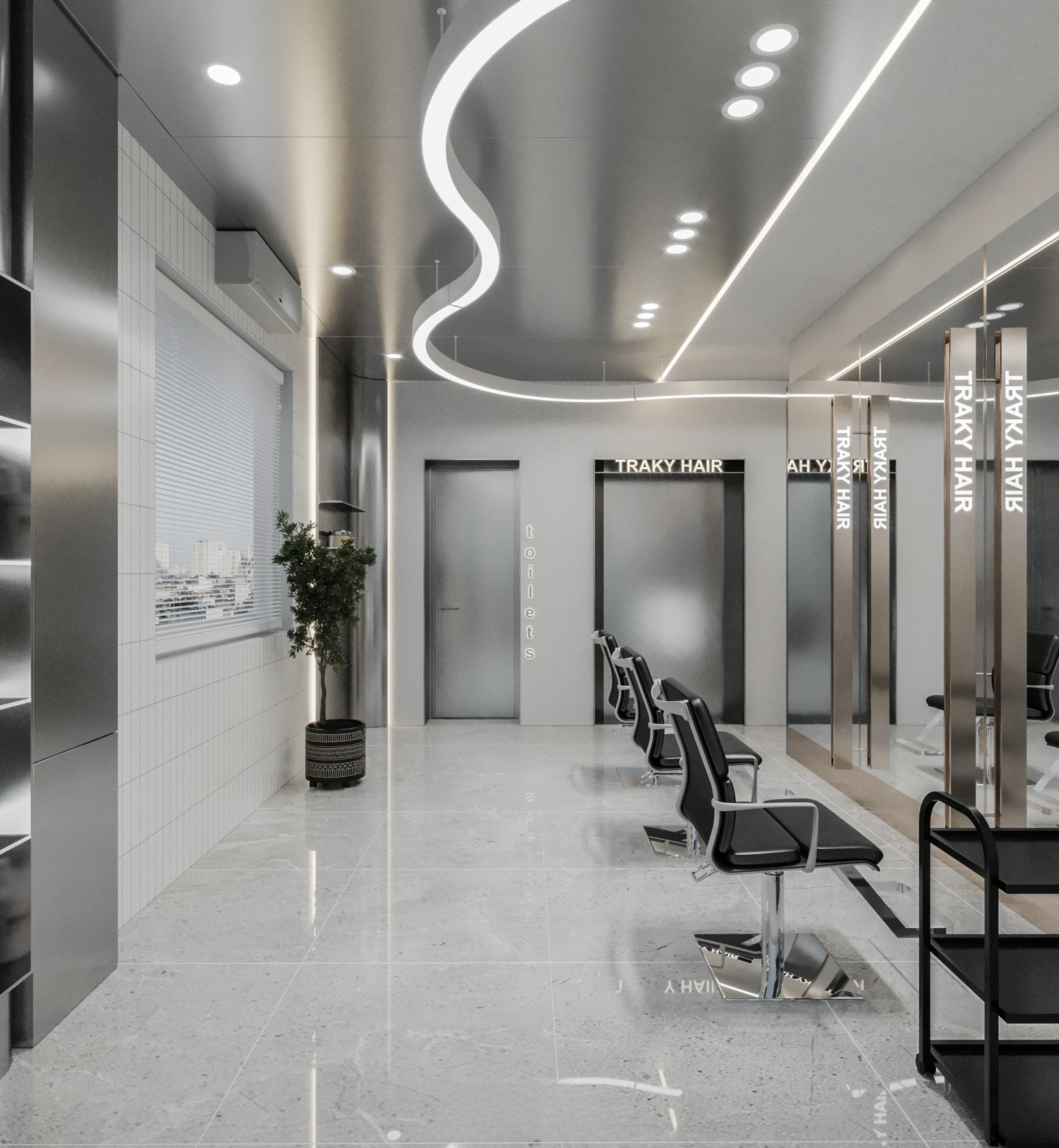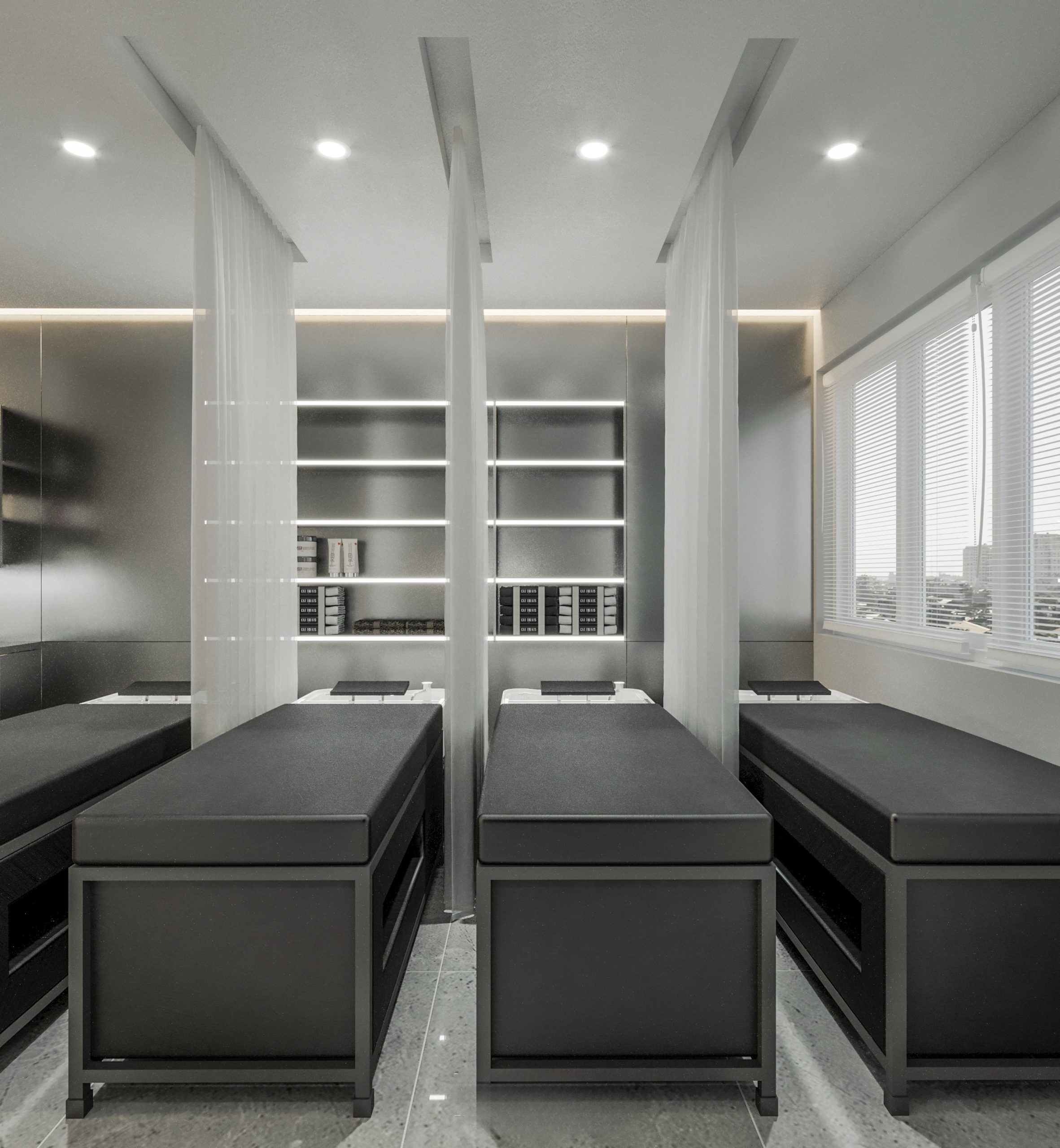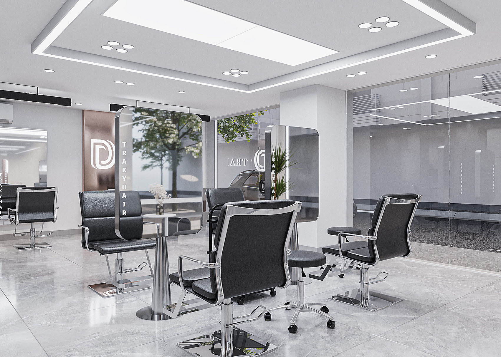 “A space built upon delicate balance, where light and shadow converge to embrace a gentle warmth. The hair zone, the lounge, and the display elements flow seamlessly together, creating a stage for both sight and sensation.”